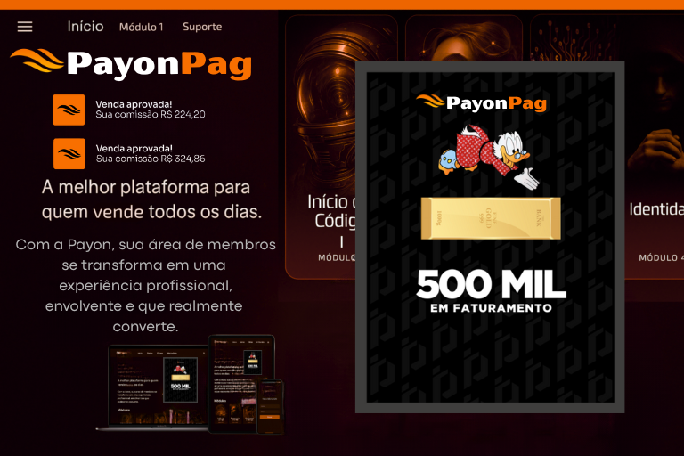 O seu conhecimento merece uma área de membros estilo NETFLIX. Com a Payon, os seus clientes terão a melhor experiência possível. Hospede as suas aulas sem nenhum custo e personalize a área de membros da maneira que desejar.